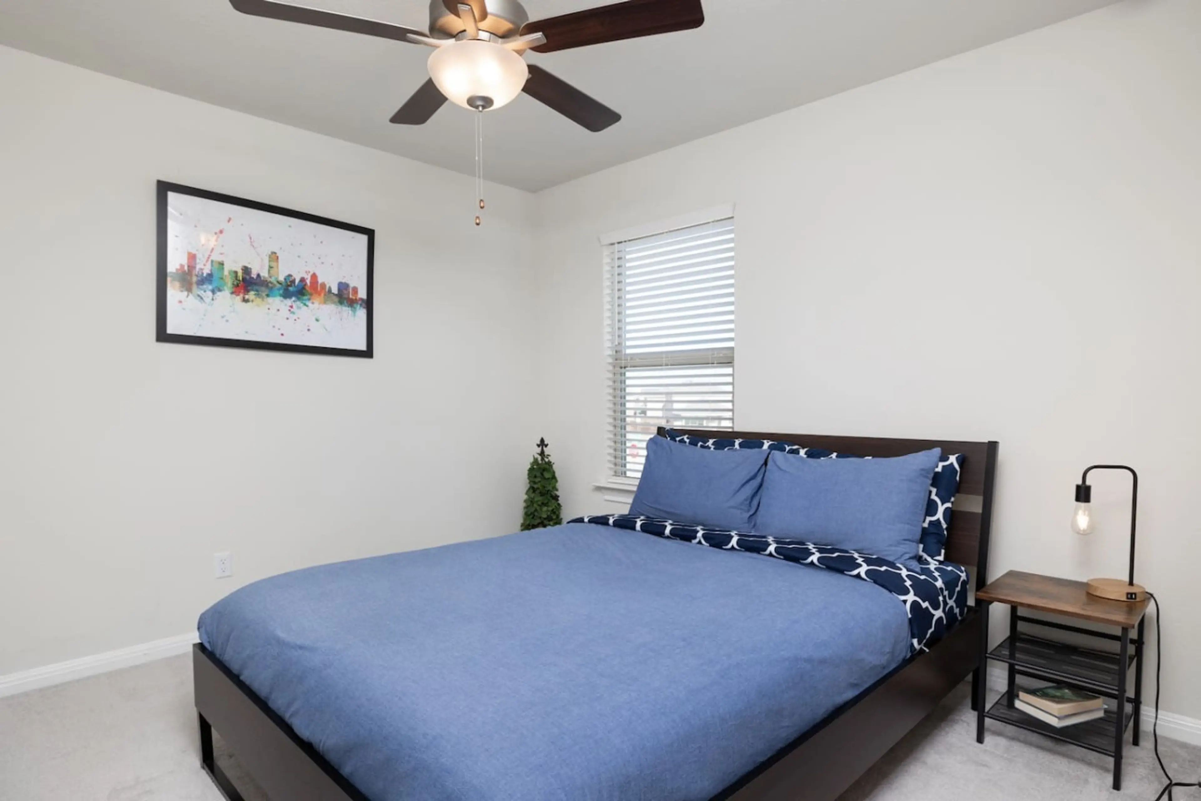 My girlfriend and I stayed here for a whole month, and it was simply perfect. We had two upstairs bedrooms that we used as our offices (both had desks/chairs), kitchen was big and fully stocked, and the master bedroom had a great master bathroom and a TV. Garage with garage door opener too! Easy check-in, VERY responsive and helpful host, and a nice quiet neighborhood. 10/10 would absolutely recommend!!